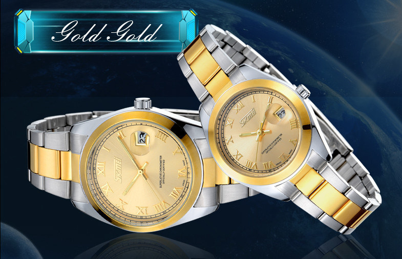 পণ্যের নাম: হটেস্ট দম্পতি চলন গোল্ডেন স্টেইনলেস স্টীল কোয়ার্টজ ঘড়ি জাপান Movts সঙ্গে শ্রেষ্ঠ উপহার প্যাকিং