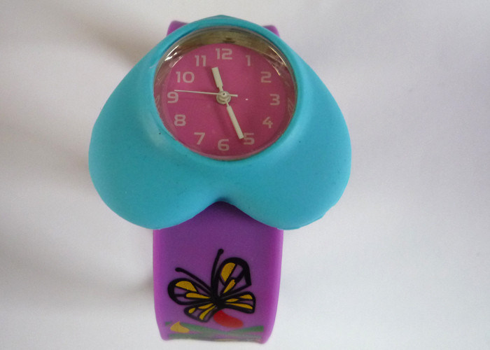 ব্লু হার্ট কেস বেগুনি প্রজাপতি সিলিকন চড় wristband ভাস্বর গুঁড়া দিয়ে ঘড়ি