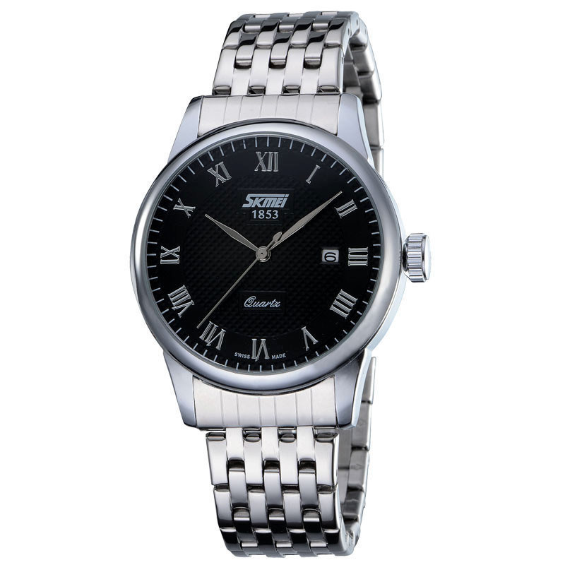 Japanische batteriebetriebene wasserdichte Geschäfts-Art der Edelstahl-Quarz-Uhr-50m