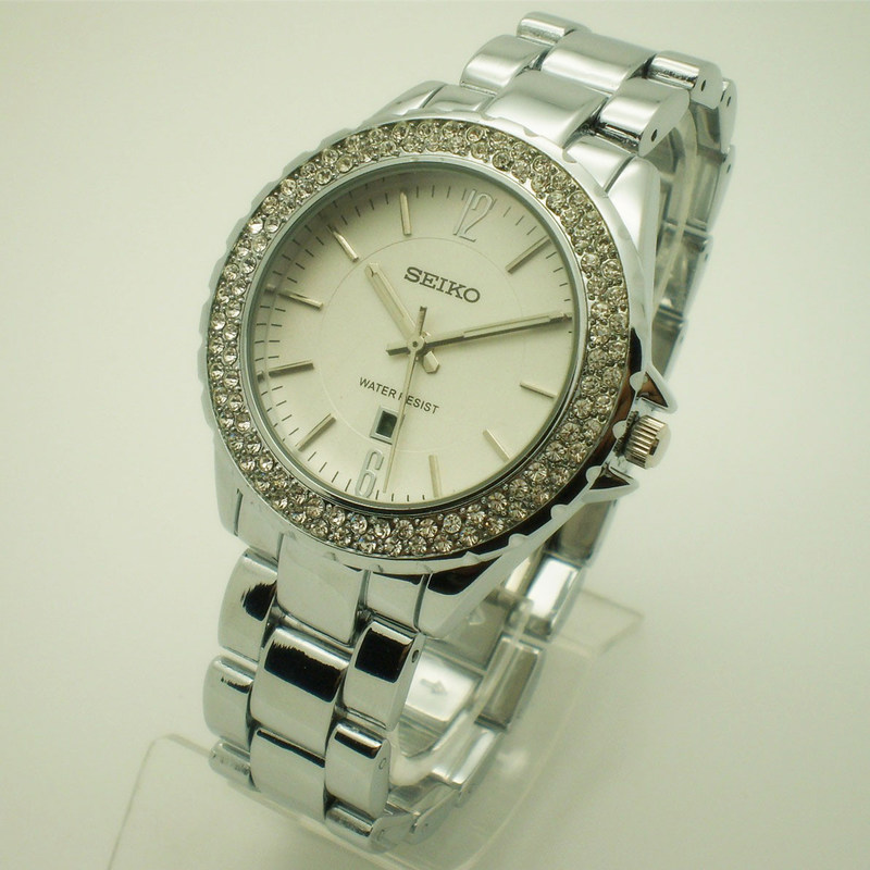 Stainless Steel kuarsa jam tangan untuk wanita, womens jam tangan dengan diamond