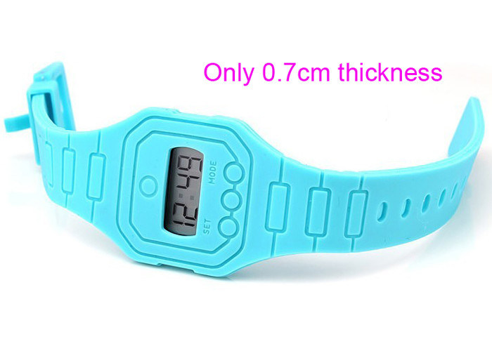 青く極めて薄いシリコーンのデジタル腕時計 |