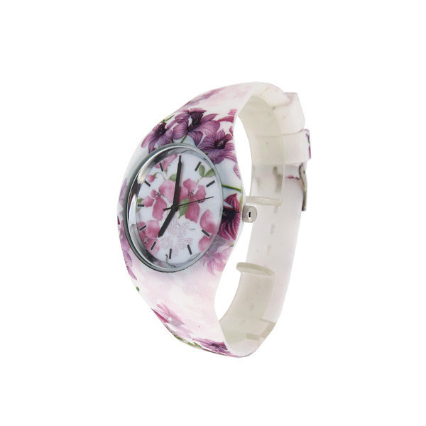 꽃 인쇄 실리콘 소맷동 시계 물 저항하는 남녀 공통 석영 시계